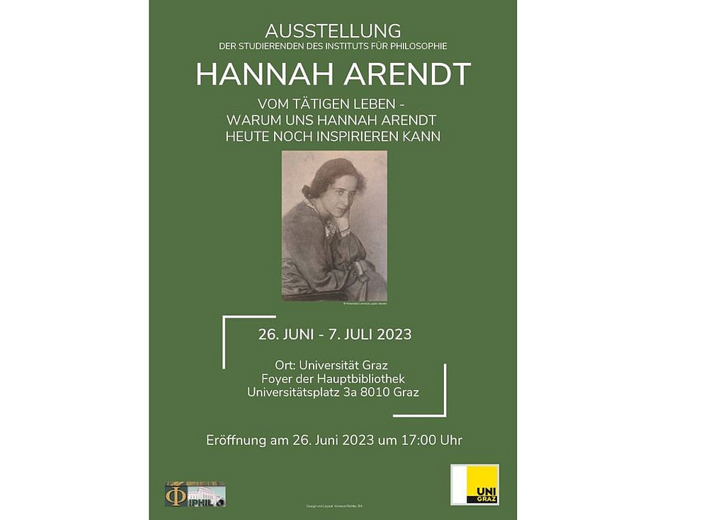 Studierende des Instituts für Philosophie haben sich in der Lehrveranstaltung "Vom tätigen Leben – Warum uns Hannah Arendt heute noch inspirieren kann“, unter der Leitung von Daniela G. Camhy, mit dem Werk und Wirken der bedeutenden deutsch-US-amerikanischen Philosophin beschäftigt und eine Posterausstellung ins Leben gerufen.